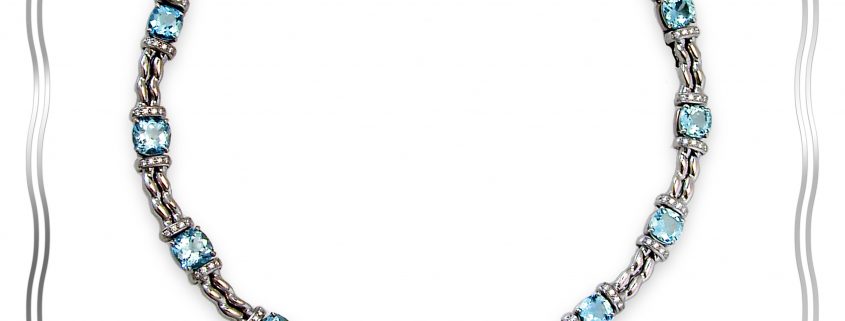 /in News/by Monica KaufmannPromoting serenity and a harmonious disposition, the aquamarine is the focus of the Flowing Lines Aquamarine Necklace. The blue-hued stone of faithfulness makes this the perfect gift for your new bride, or an anniversary, as it represents the safeguarding of your love and devotion. Commemorate your bond with this treasure that will protect and nourish both your hearts. Hand-made in 18k white gold, contains 120 diamonds and 15 aquamarines.