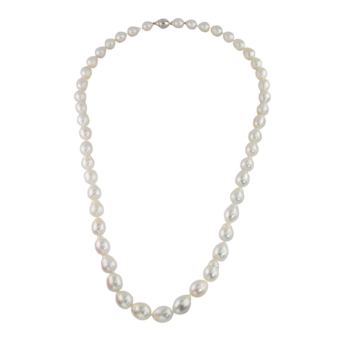 36 Inch Baroque South Sea Pearl Strand Necklace featuring 48 Baroque South Sea Pearls measuring from 12 to 20mm with an 18kt White Gold Bayonette Clasp