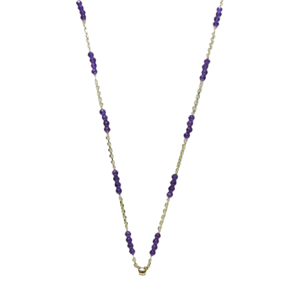 Amethyst Chain Necklace Designed & Handmade by Kaufmann de Suisse featuring 68 x 4mm Faceted Amethyst Beads weighing a total of 30.24cts on a 14kt Yellow Gold Rolo Chain