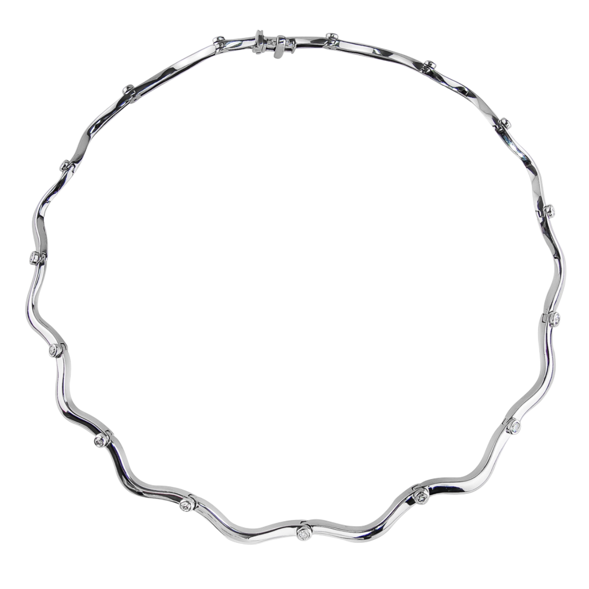 Amethyst & Diamond Flowing Lines Wave Necklace in White Gold