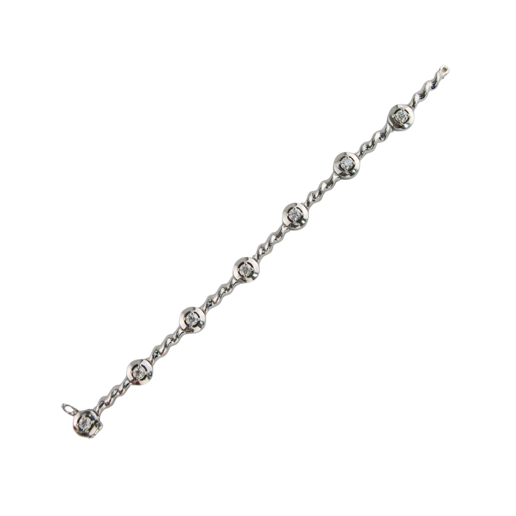 Diamond Bracelet, Handmade in 18k White Gold with 7 Round Diamonds Weighing 1.27 Carats Total