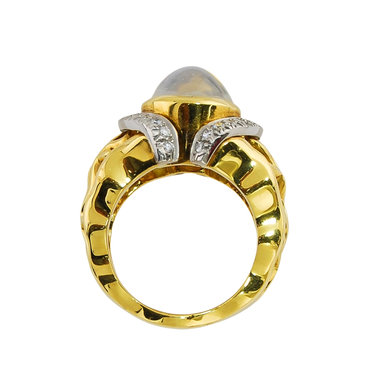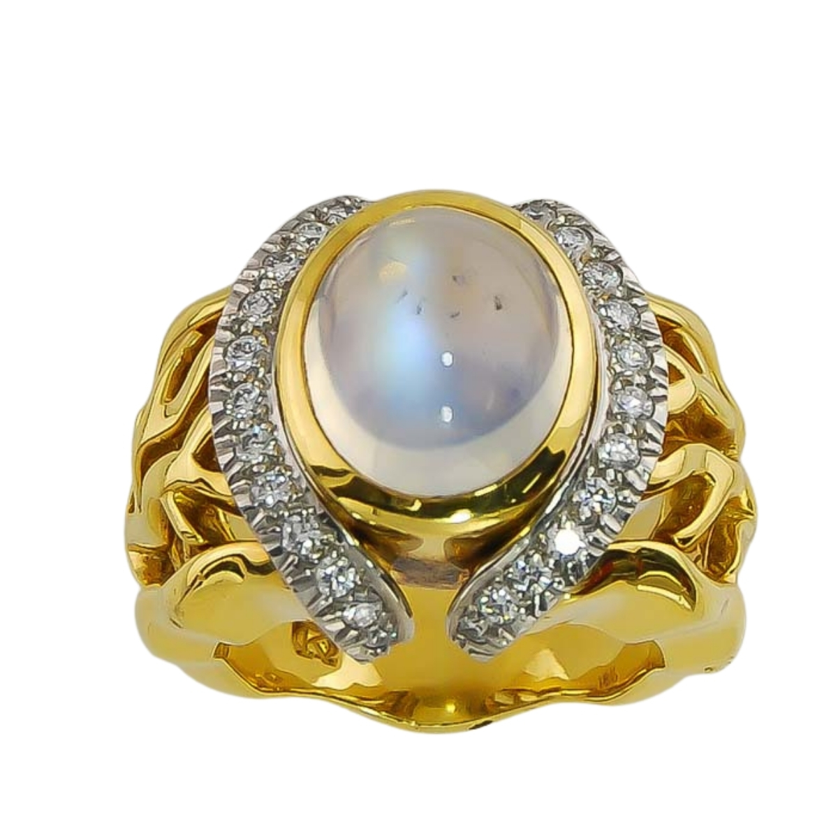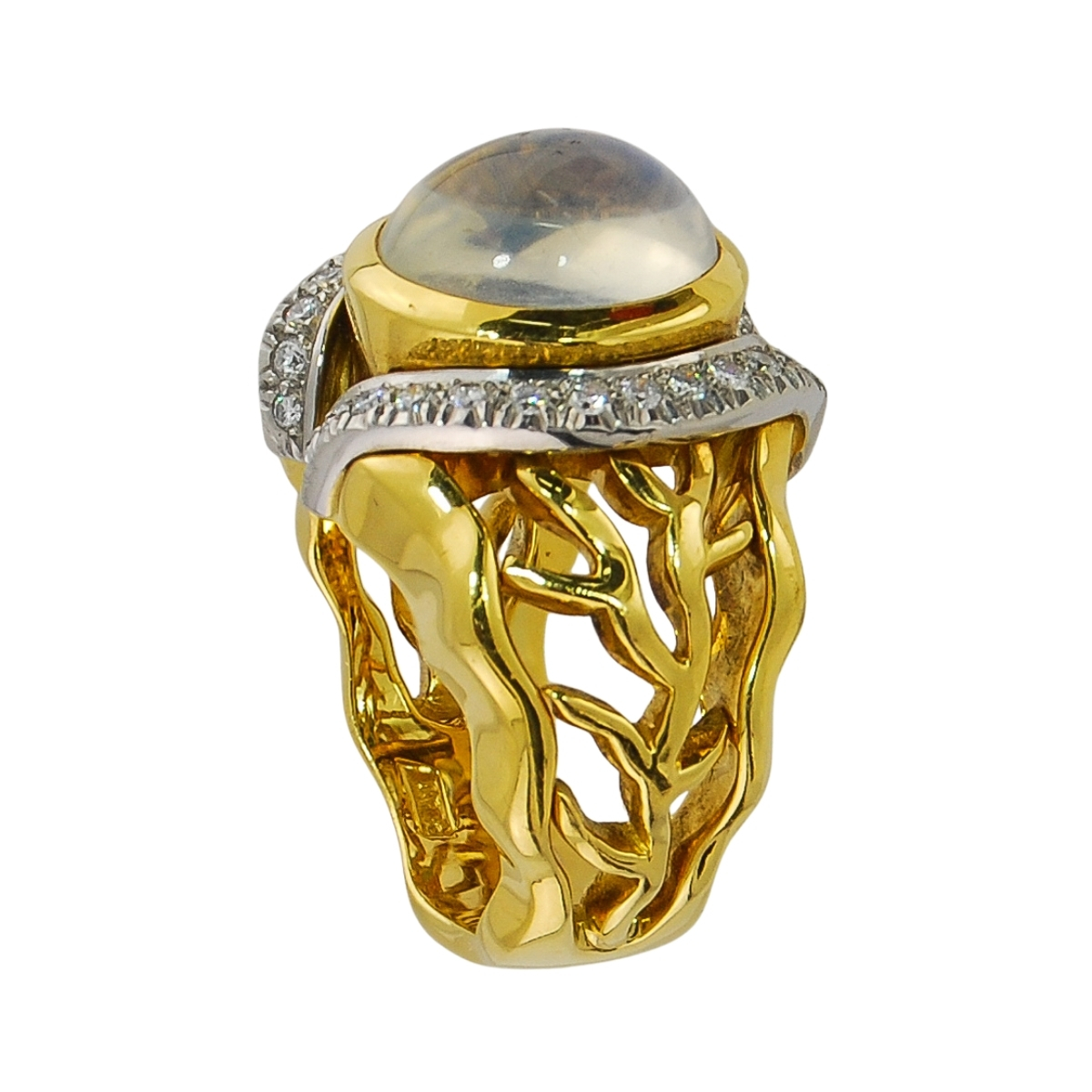 Open Flowing Lines Moonstone and Diamond Ring in Yellow Gold & Platinum