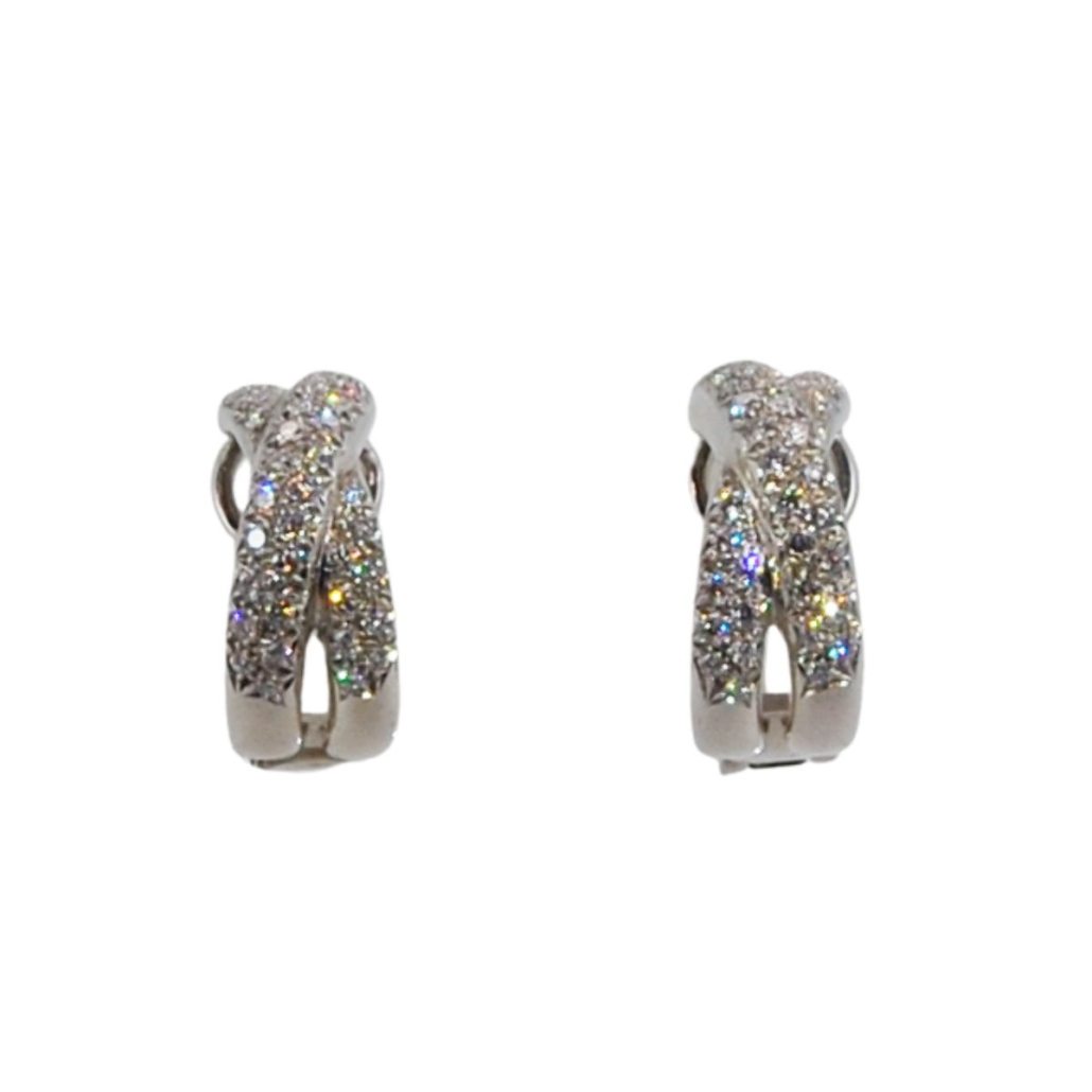 Classic Diamond Cross-Over Earclip Earrings Designed & Handmade by Kaufmann de Suisse in 18kt White Gold featuring 82 Round Brilliant cut F/VVS Quality Diamonds weighing a total of 0.94cts