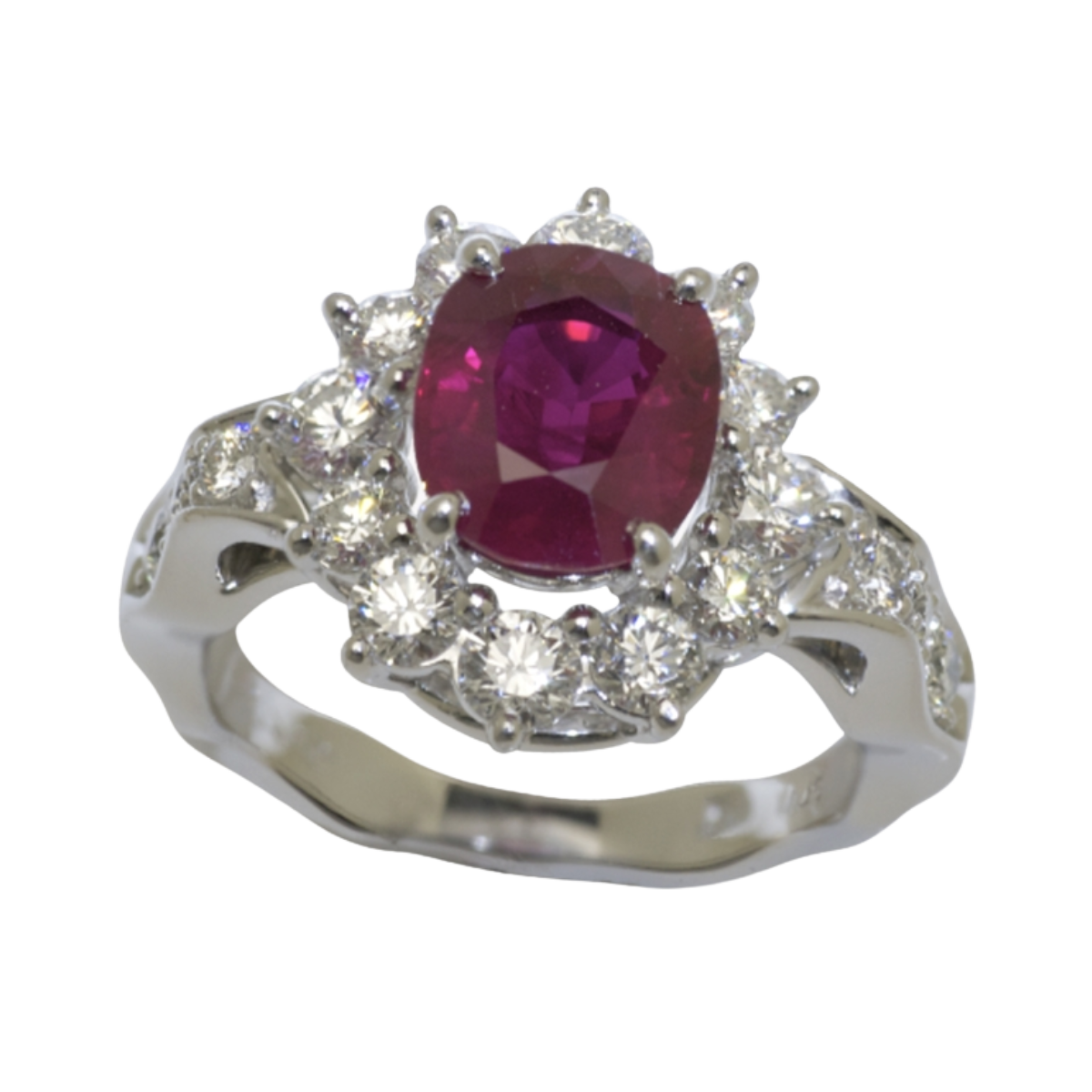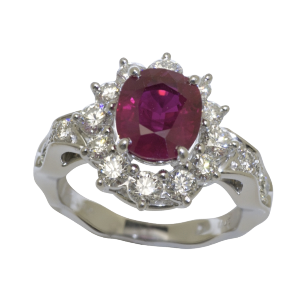 Classic Lady Diana Ruby & Diamond Ring in White Gold