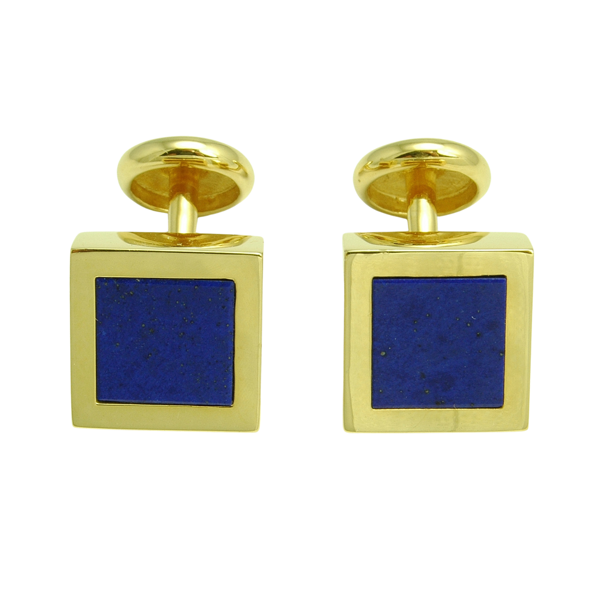 Classic Yellow Gold Lapis Lazuli Cufflinks Designed and Handmade by Kaufmann de Suisse in 18kt Yellow Gold featuring 2 Square Lapis Lazuli measuring 9mm