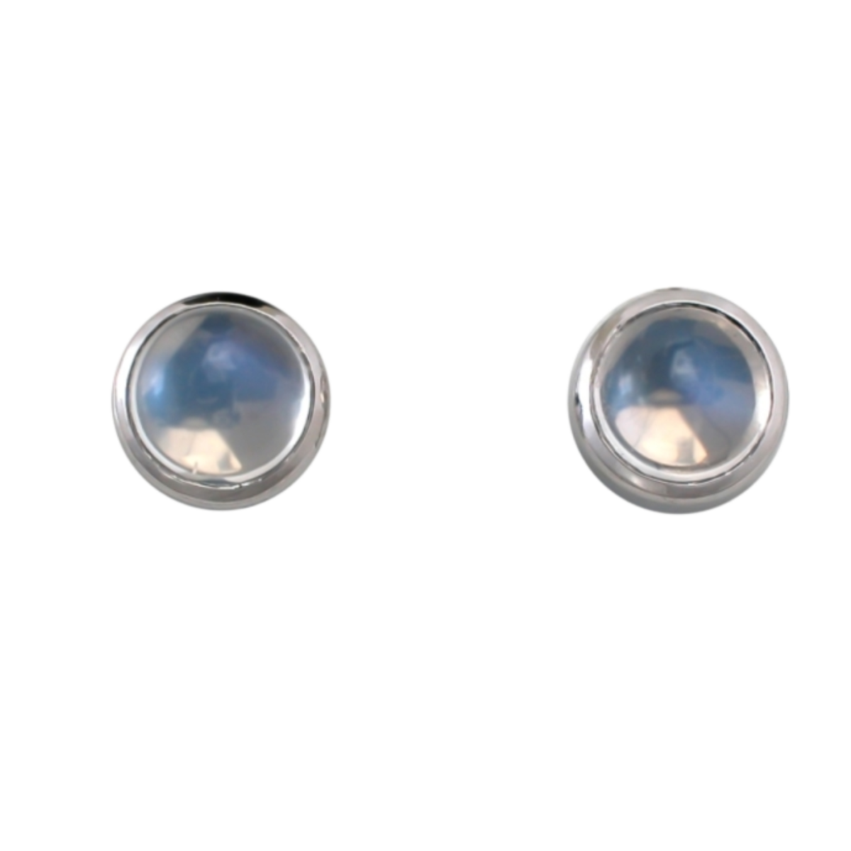 Moonstone Earrings, Handmade in 18k White Gold with 2 Round Bezel Set Moonstones Measuring 2.8mm Wide and Weighing 1.55 Carats Total