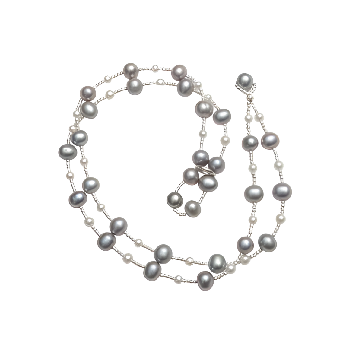 - Dark Grey Pearl & Small White Pearl Wrap Bracelet