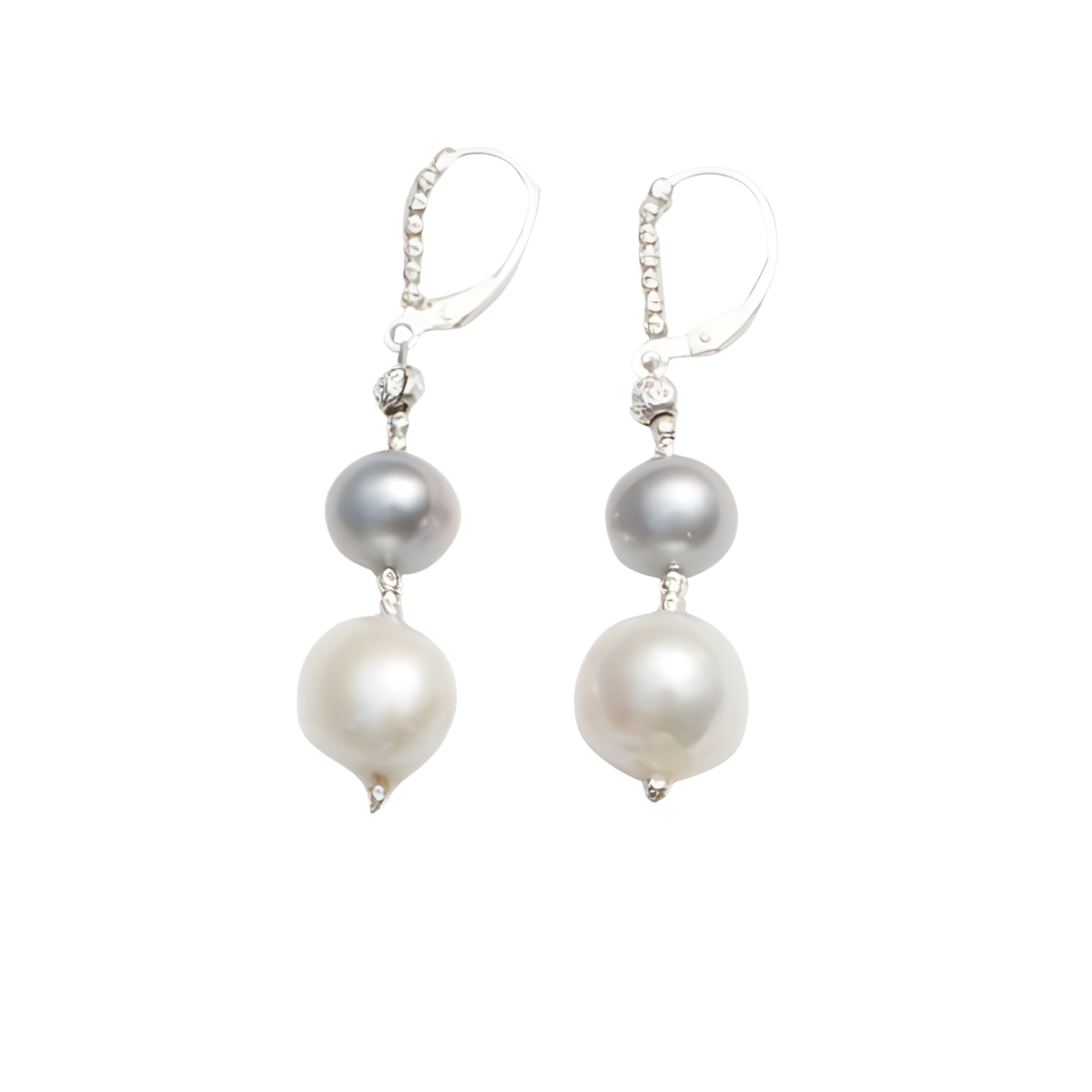 - Freshwater Cultured Dark Grey & White Pearl Drop Earrings