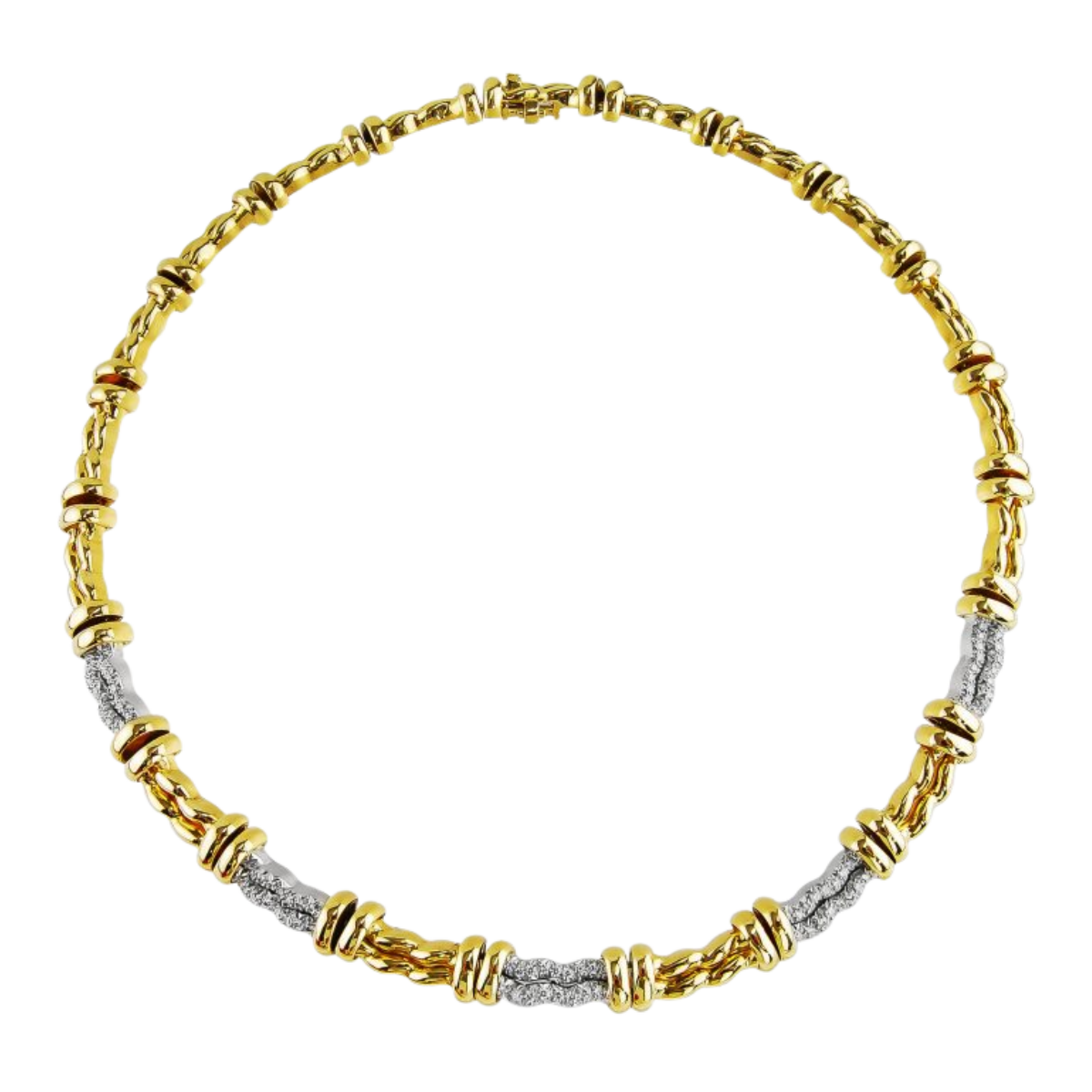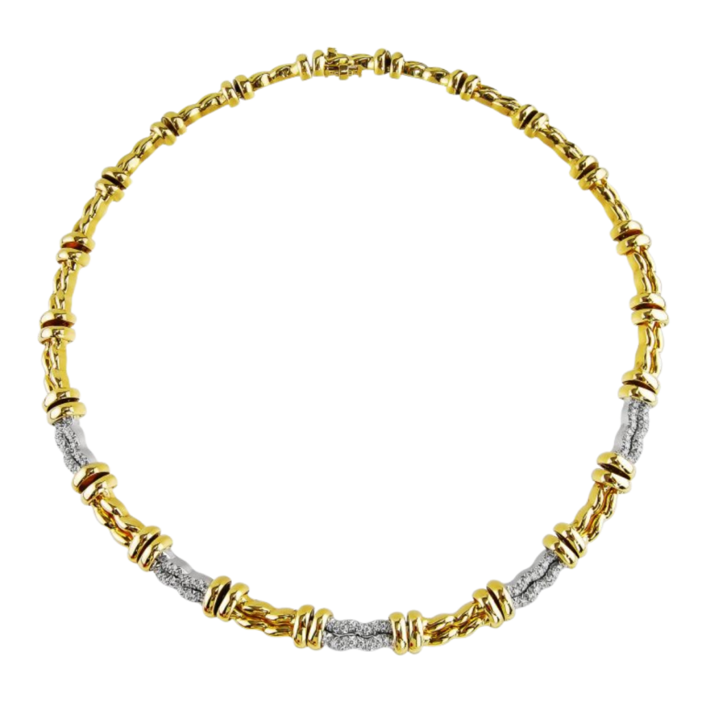 Designer Flowing Lines Yellow Gold & Diamond Collar Necklace