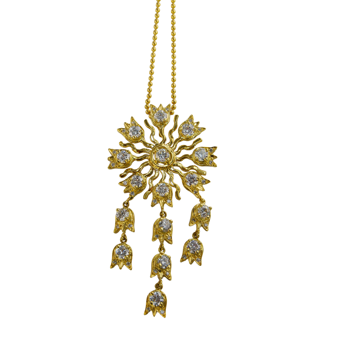 Designer Lilly of the Valley Diamond Pendant on Yellow Gold Chain