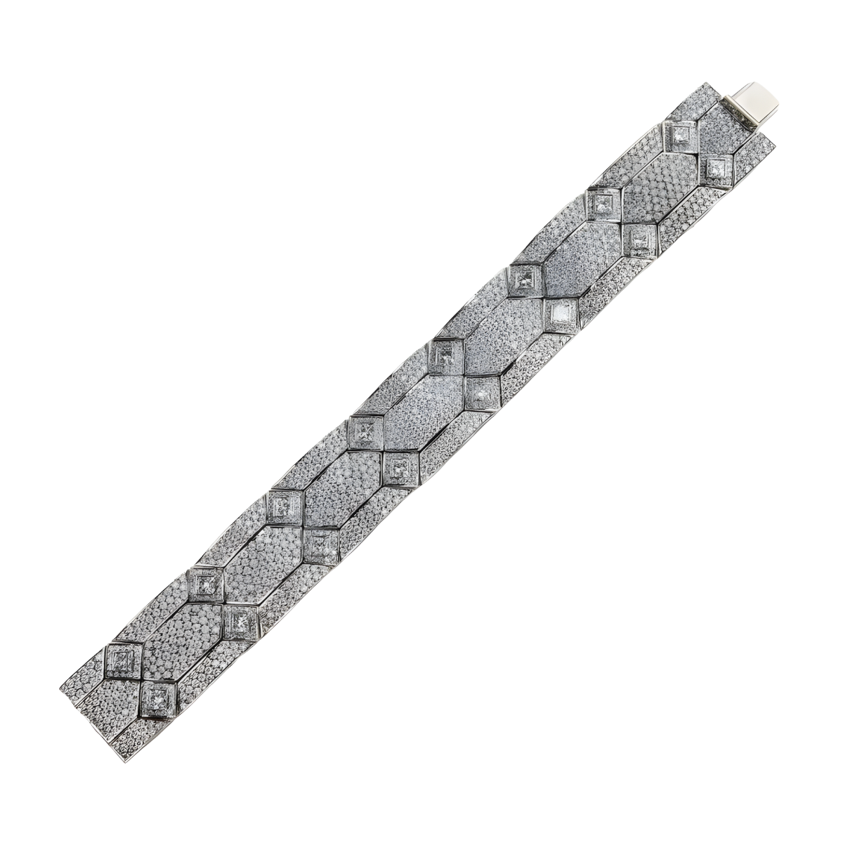 Diamond Bracelet, Handmade in 18k White Gold with 1179 Round Diamonds Weighing 24.28 Carats Total