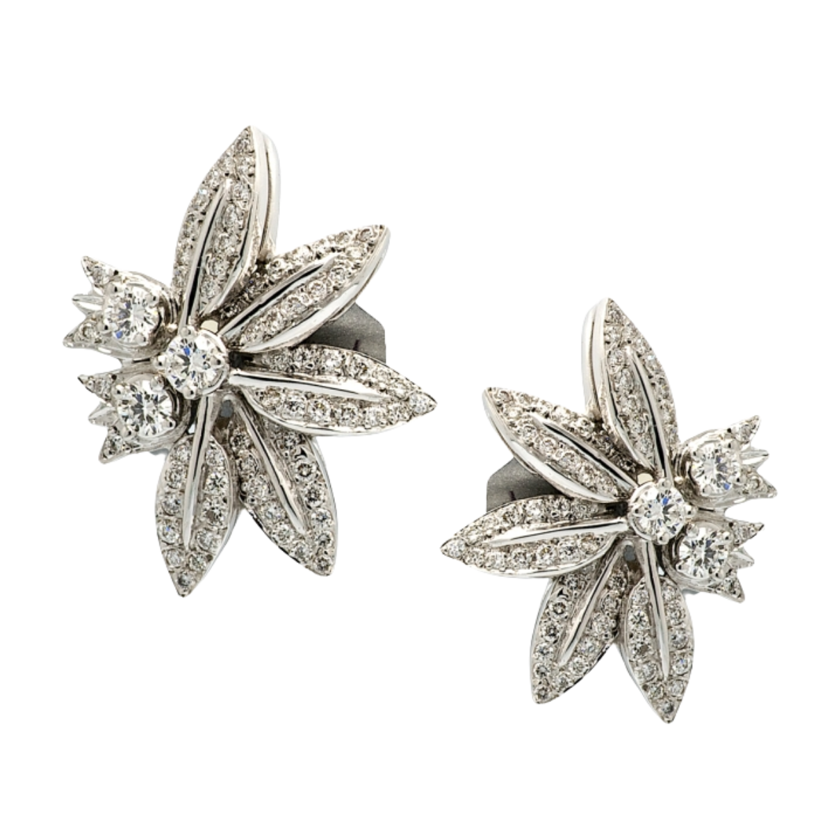 Diamond Feuille Earclips Designed & Handmade by Kaufmann de Suisse in 18kt White Gold featuring 140 Round Brilliant cut G/VS Quality Diamonds weighing a total of 2.11cts