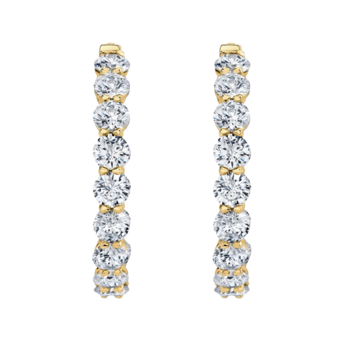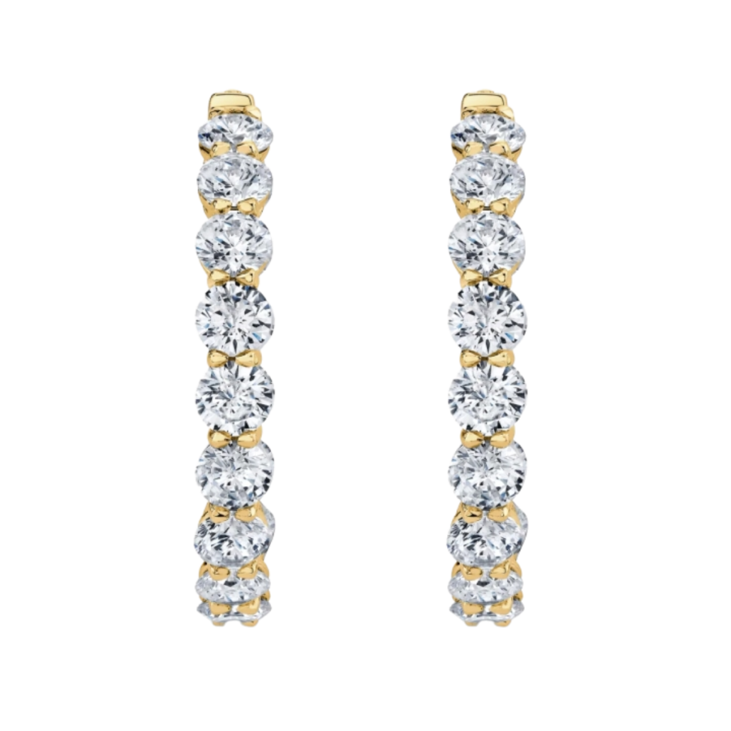 Diamond J Hoops Designed & Handmade by Kaufmann de Suisse in 18kt Yellow Gold featuring 28 Round Brilliant cut H/SI Quality Diamonds weighing a total of 4.52cts