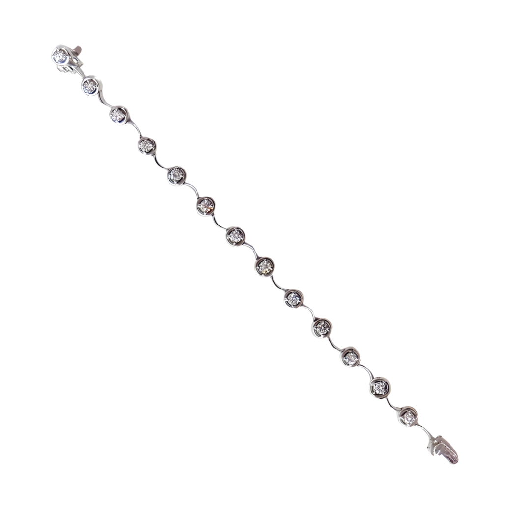 Single Row Diamond Cascade Bracelet Designed & Handmade by Kaufmann de Suisse in 18kt White Gold featuring 13 Round Brilliant Cut H/SI Quality Diamonds weighing a total of 2.69cts