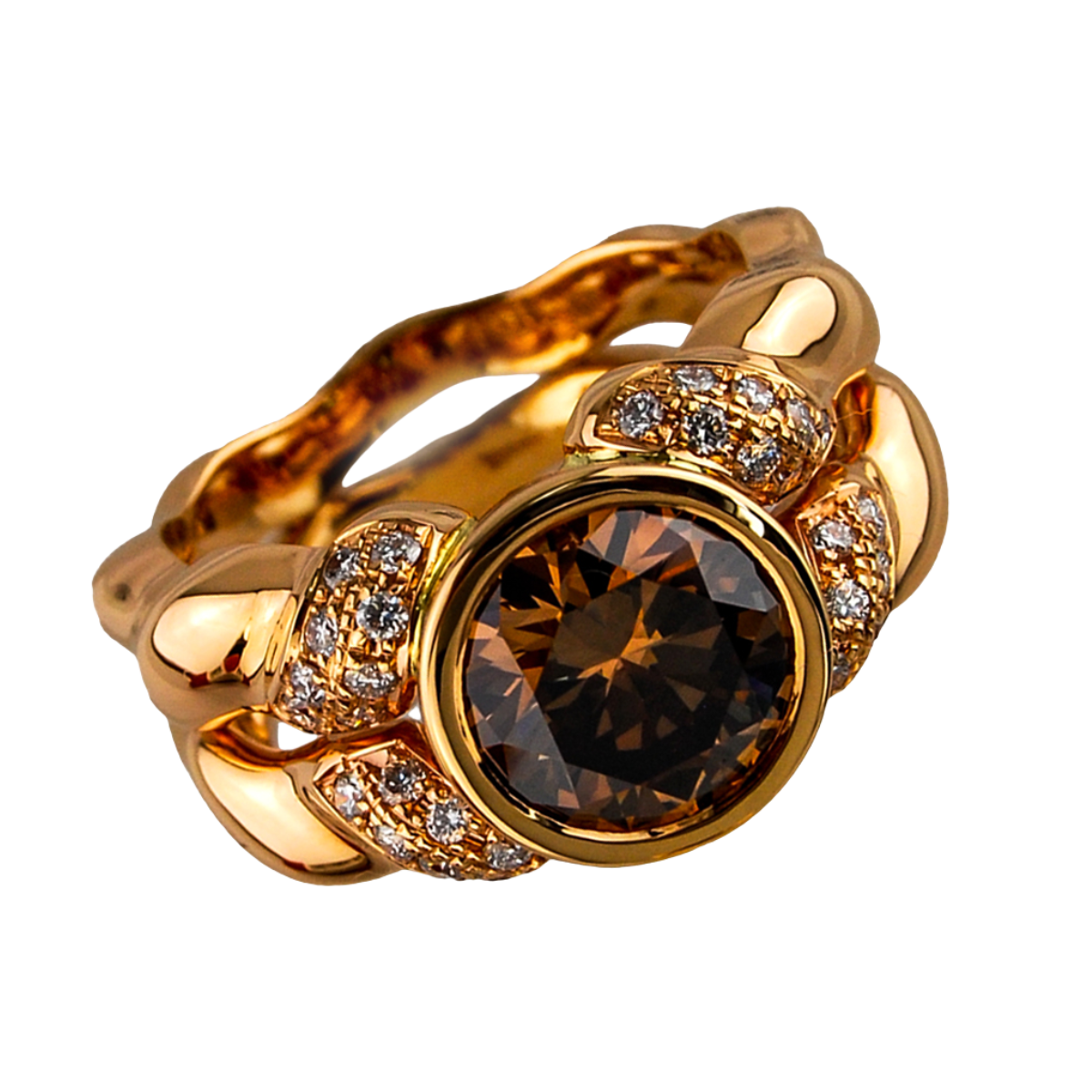 Double Flowing Lines Rose Gold Ring with Fancy Orangey-Brown 2.57cts Brilliant Cut Diamonds