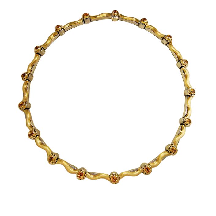 Flowing Lines Citrine Necklace Designed & Handmade by Kaufmann de Suisse in 18kt Yellow Gold & Stainless Steel featuring 16 Oval & Bezel Set Citrine weighing a total of 17.00cts