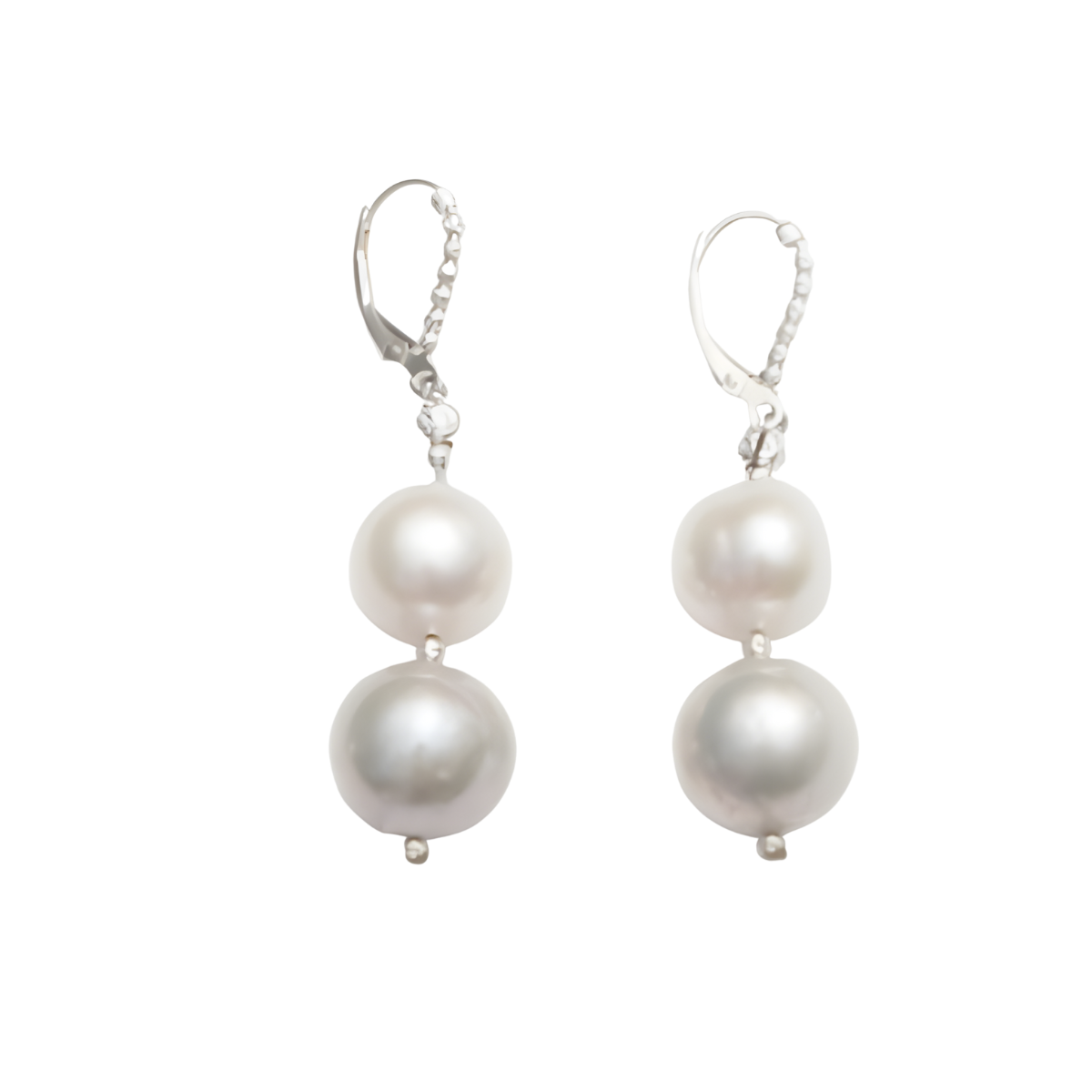 - Freshwater Cultured Grey and White Pearl Drop Earrings