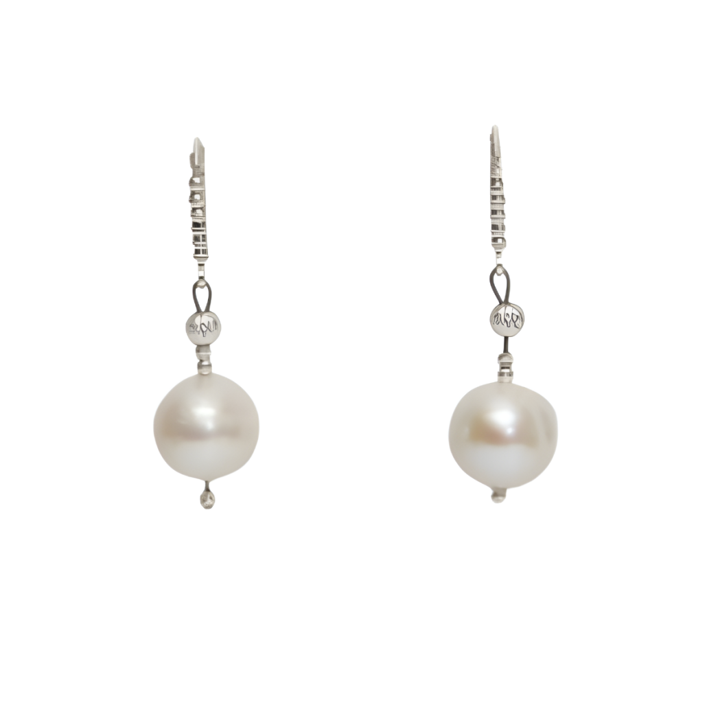 - Freshwater Cultured Single Pearl Dangle Earrings with Silver Diamond Cut Beads