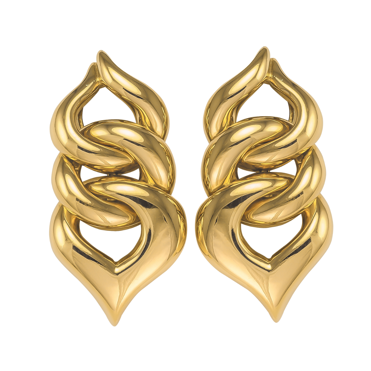 Gold Interlocking Link Dangle Earrings, Handmade in 18k Yellow Gold
