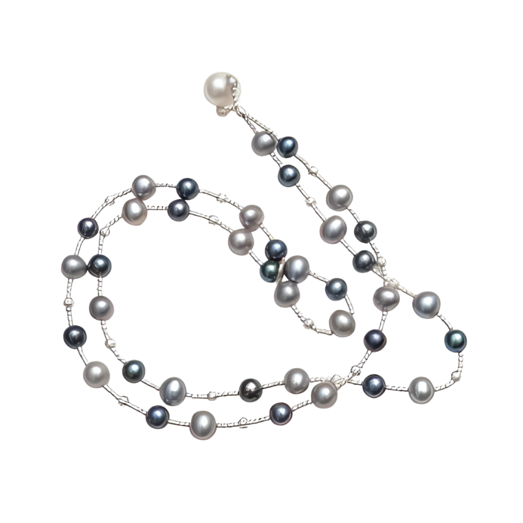- Grey & Black Dyed Pearl Wrap Bracelet With Single White Pearl Closure
