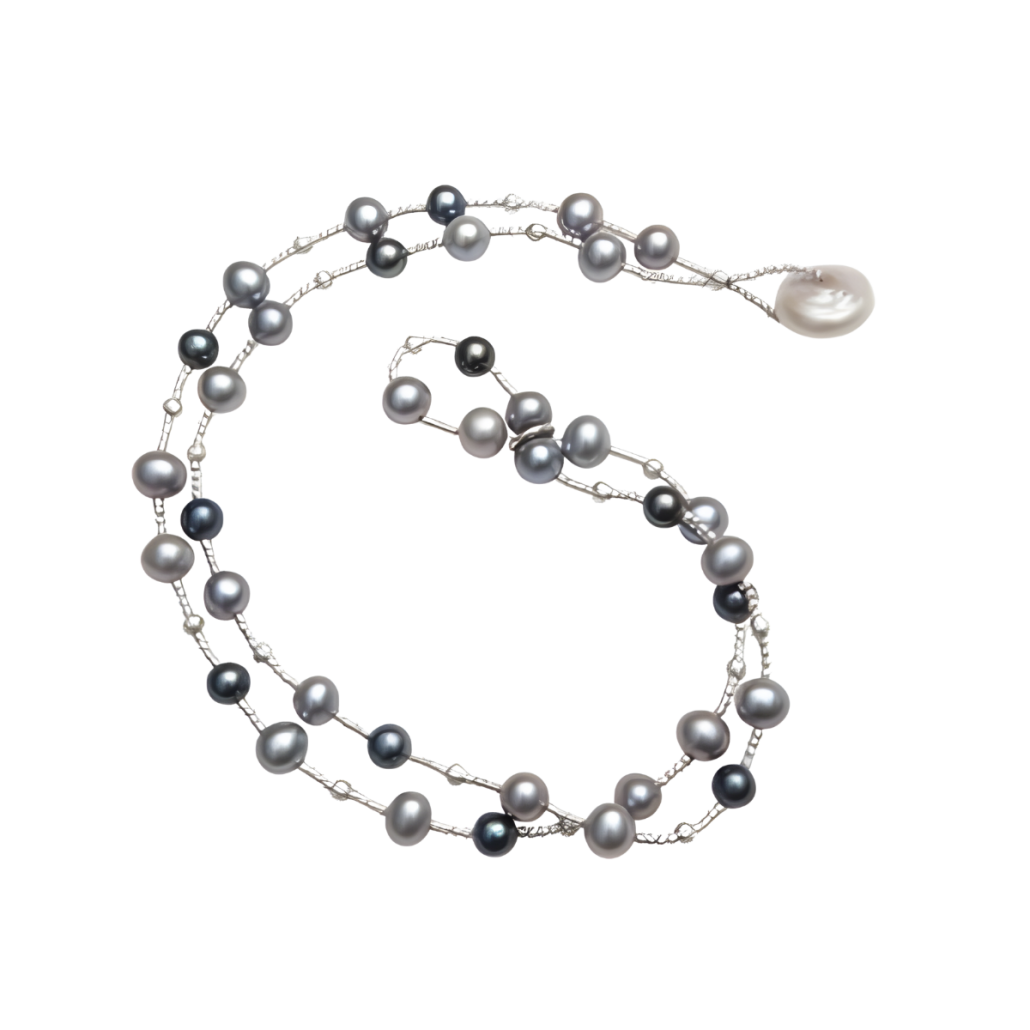 - Grey & Black Dyed Pearl Wrap Bracelet