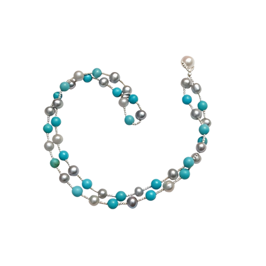 - Grey, Black Dyed Pearls & Turquoise Wrap Bracelet