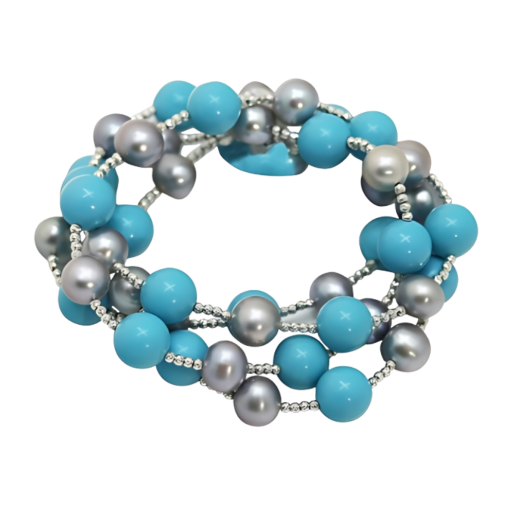 - Grey and Black Pearl Wrap Bracelet with Turquoise