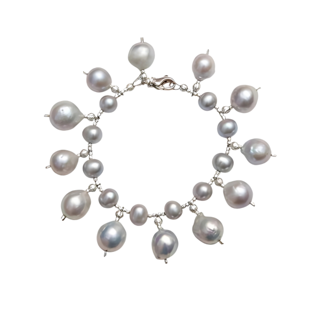 - Grey Freshwater Pearl Bracelet with Grey Pearl Drops