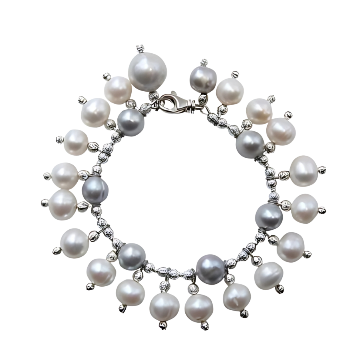 - Grey Pearl Bracelet With White Pearl Drops & 1 Single Grey Drop