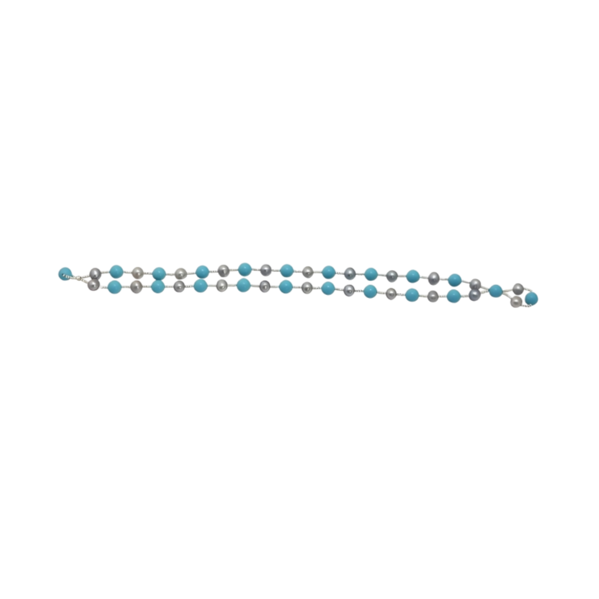 - Grey Pearl and Turquoise Wrap Bracelet