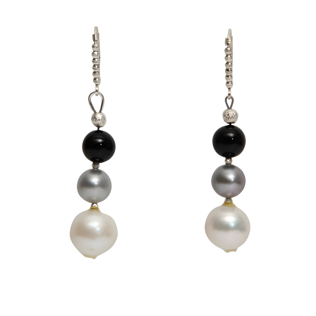 - Grey and White Pearl Earring with Onyx Beads