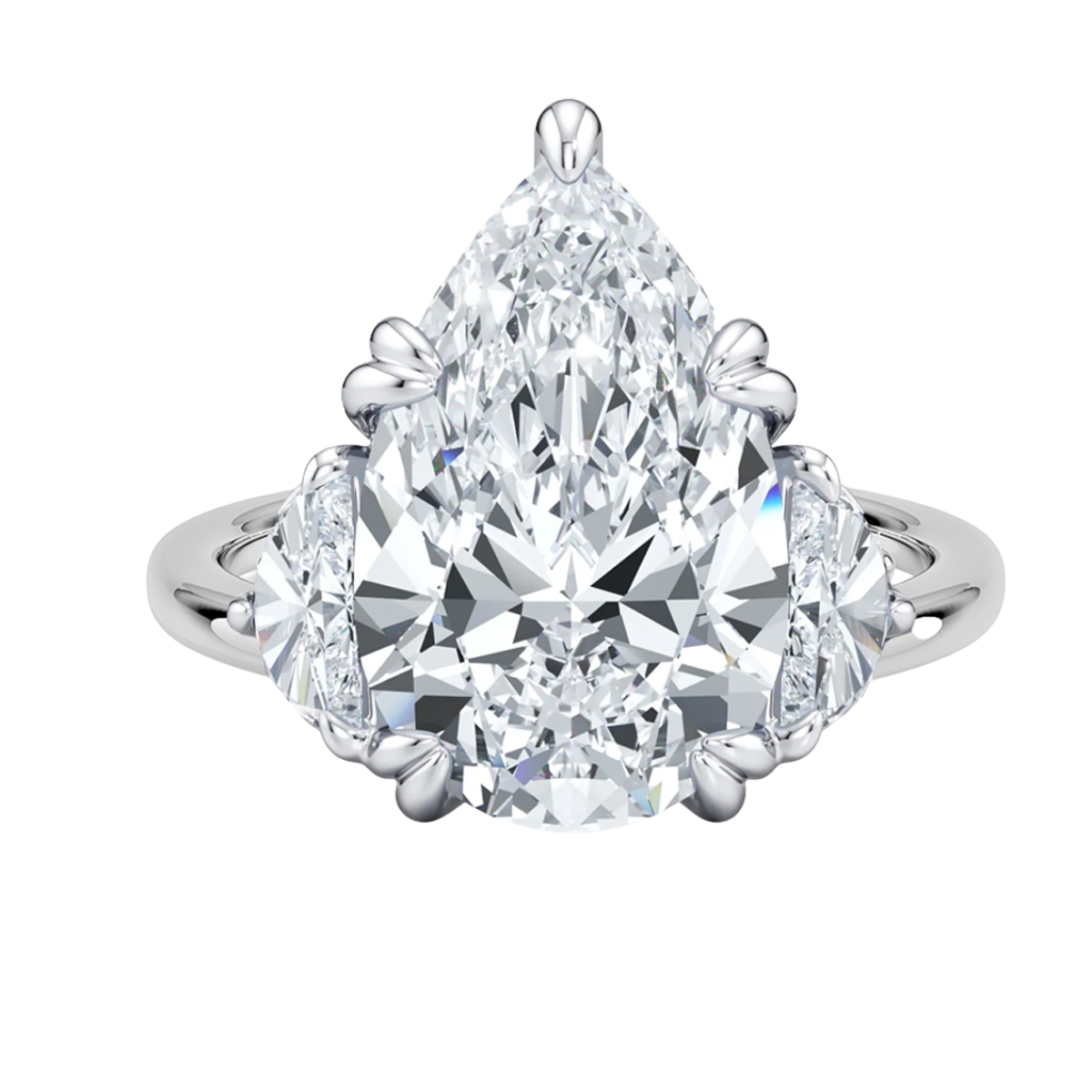 Pear Shaped Diamond Ring flanked by two Half Moon Diamonds