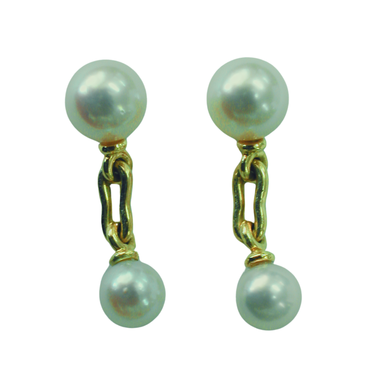 Pearl Drop Earrings Designed & Handmade by Kaufmann de Suisse in 18kt Yellow Gold featuring 4 Akoya Pearls measuring 6mm and 7.5mm