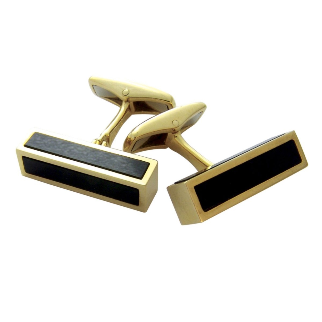 Yellow Gold Rectangular Onyx Cufflinks Designed and Handmade by Kaufmann de Suisse in 18kt Yellow Gold featuring 6 Rectangular Onyx measuring 20 x 4mm