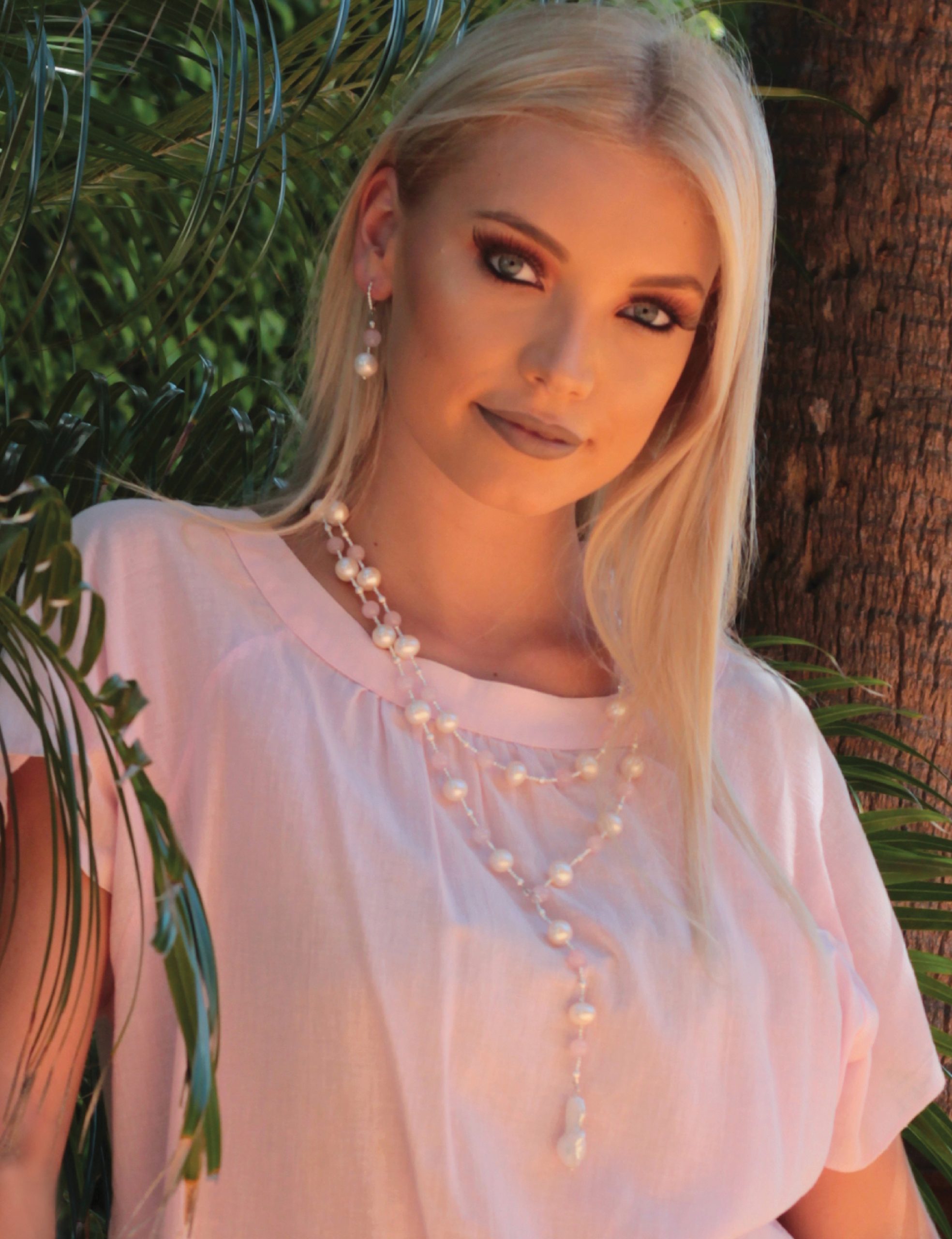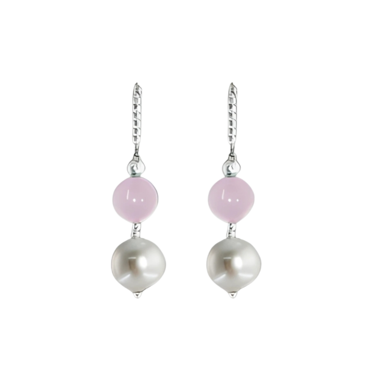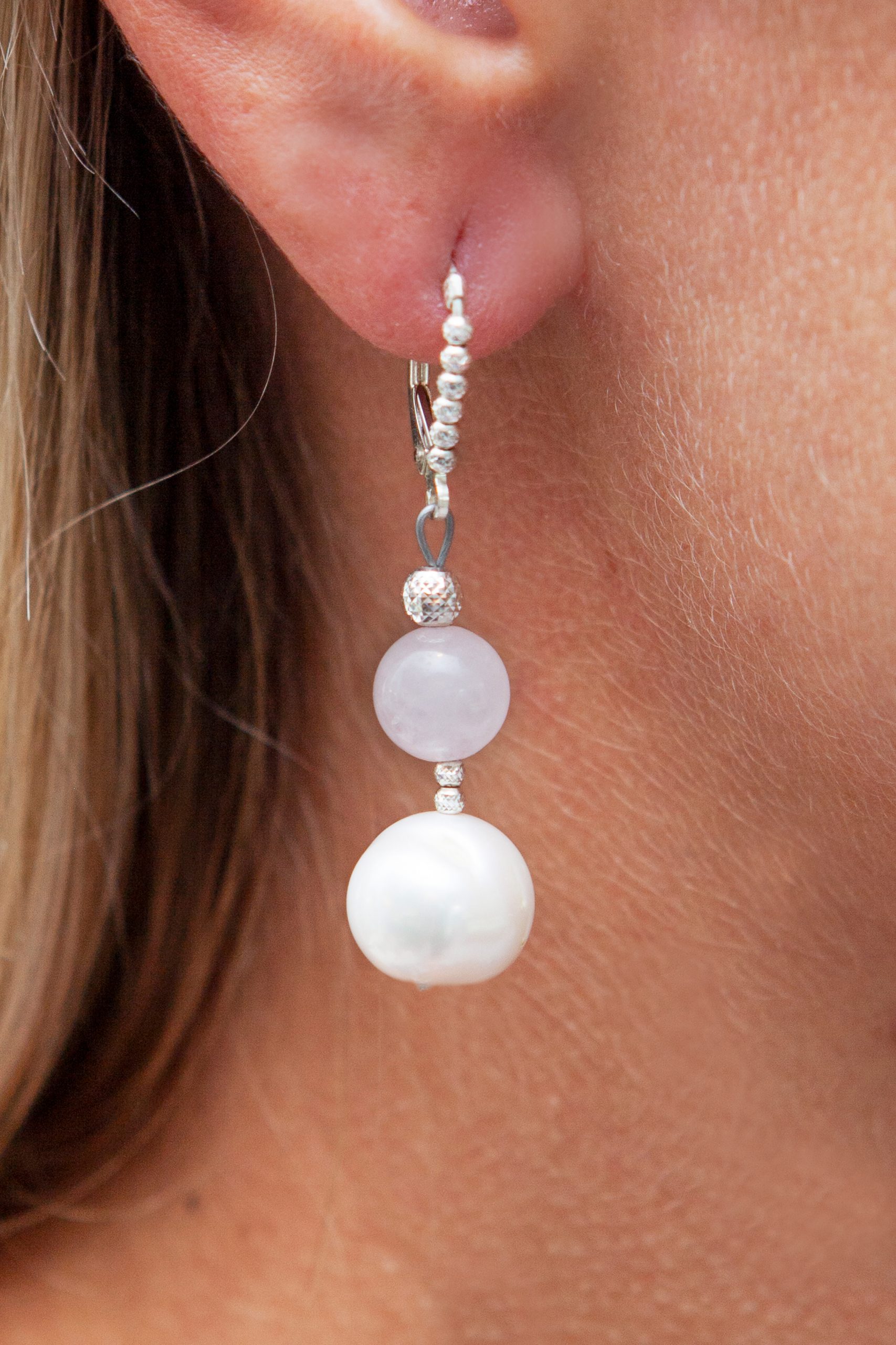 - Rose Quartz and Freshwater White Pearl Earrings
