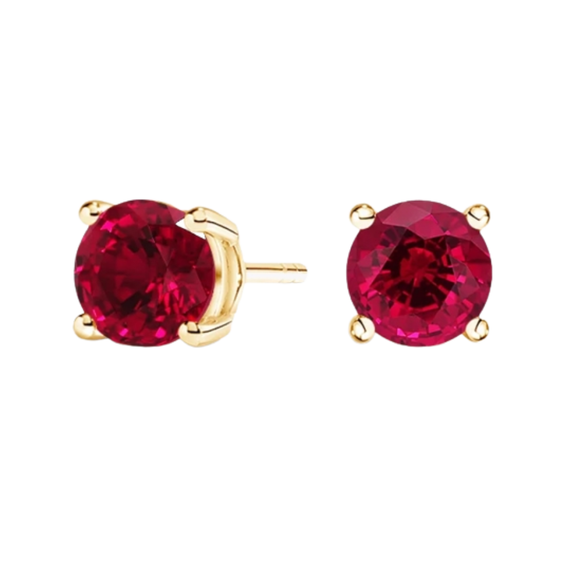 Round Ruby Studs in Yellow Gold