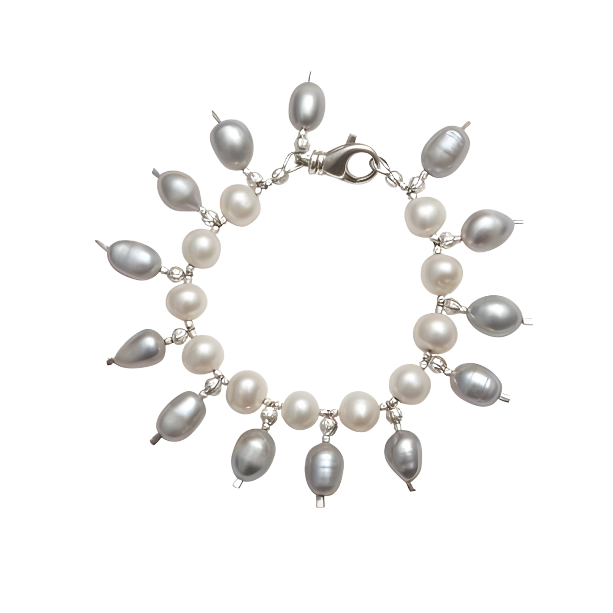 Diamond Shape Freshwater Grey & White Pearl Bracelet with Drops