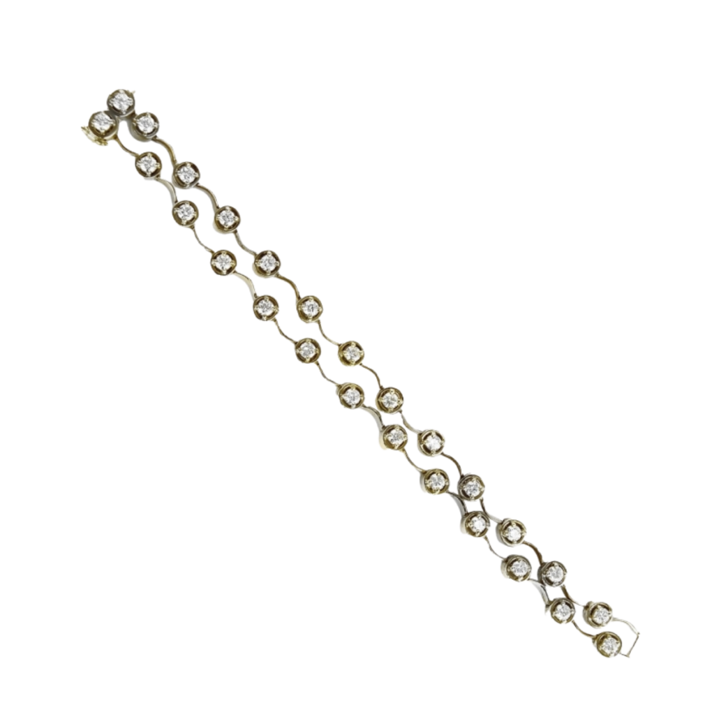 Double Diamond Cascade Bracelet Designed & Handmade by Kaufmann de Suisse in 18kt White Gold featuring 21 Round Brilliant Cut H/VS Quality Diamonds weighing a total of 3.33cts