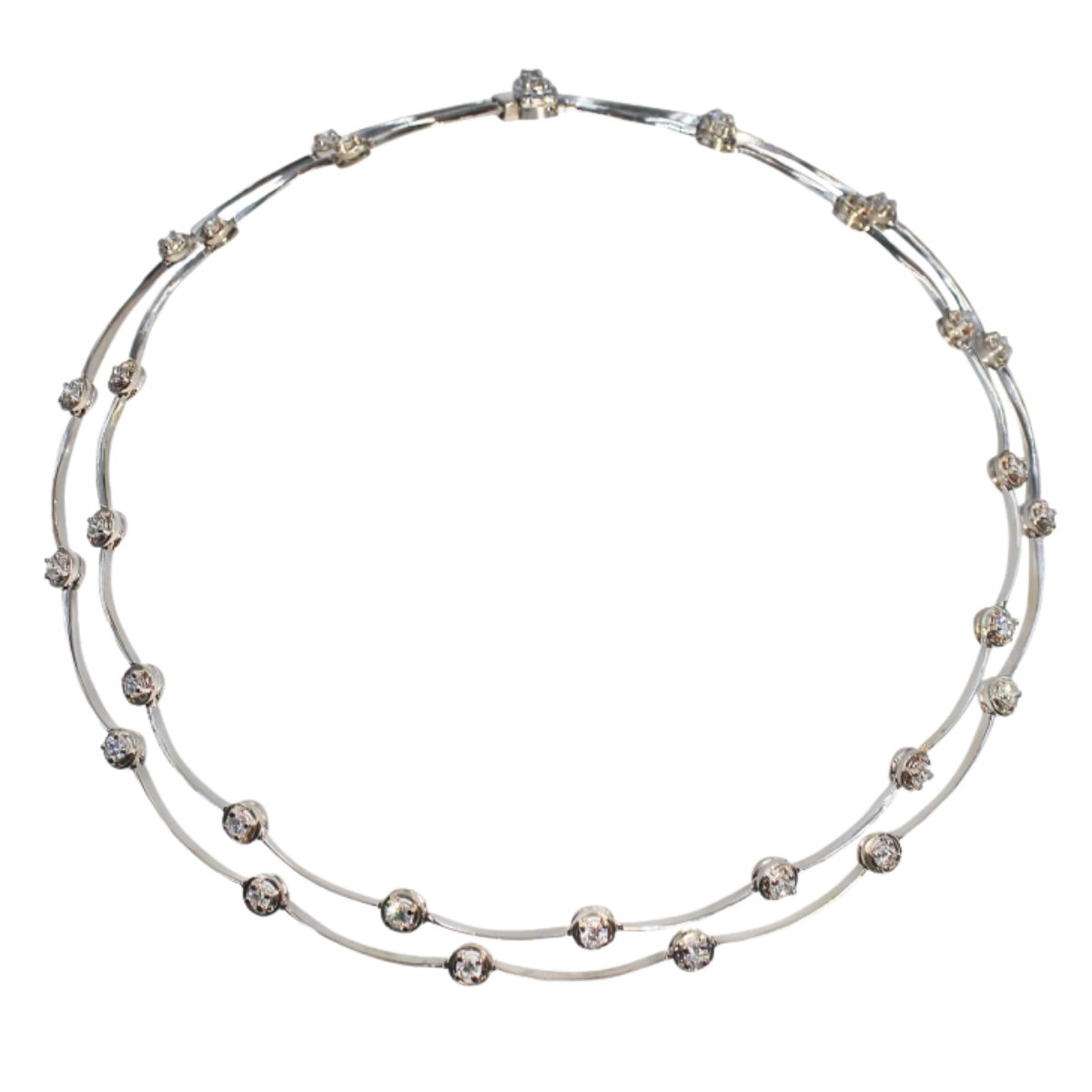 Two Row White Gold Diamond Cascade Necklace