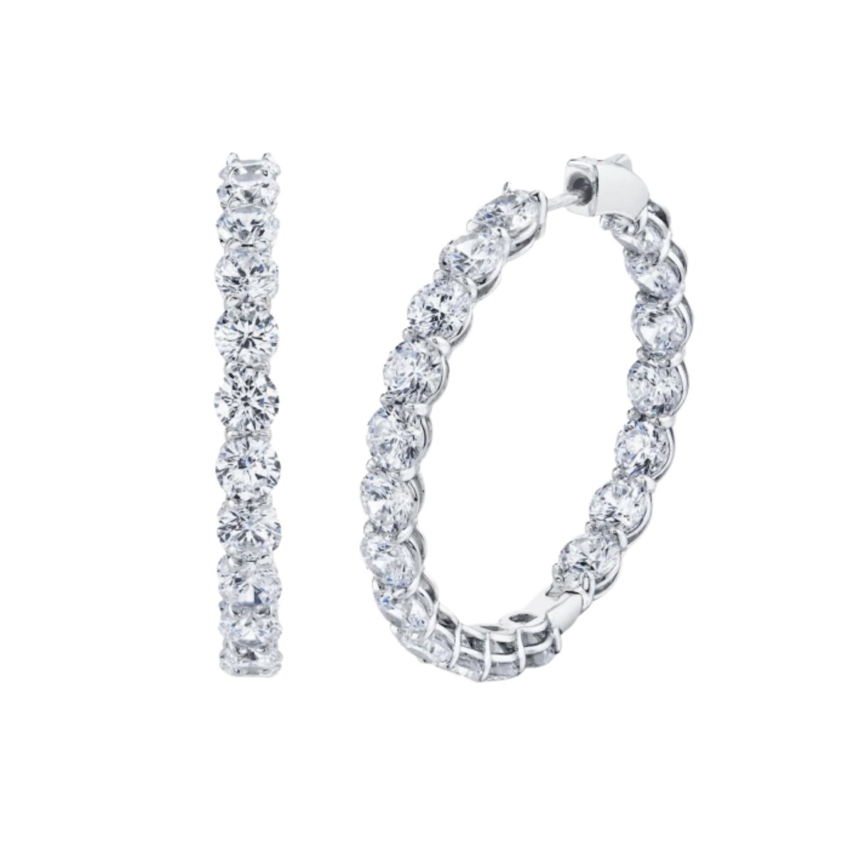 Diamond Inside Out Hoops 1 Inch Round made in 14kt White Gold featuring 28 Round Brilliant Cut G/VS Quality Diamonds weighing a total of 2.51cts