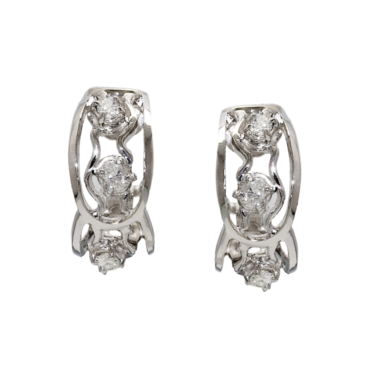 Open Flowing Lines Diamond Earrings Designed & Handmade by Kaufmann de Suisse in 18kt White Gold featuring 16 Oval H/SI Quality Diamonds weighing a total of 0.95cts.