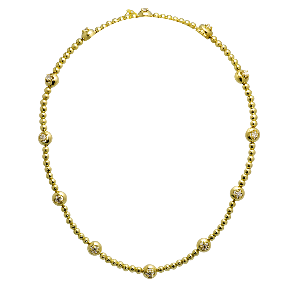 Yellow Gold Bead & Diamond Collar Necklace Designed & Handmade by Kaufmann de Suisse in 18kt Yellow Gold featuring 12 Round Brilliant Cut G/VS Quality Diamonds weighing a total of 2.07cts
