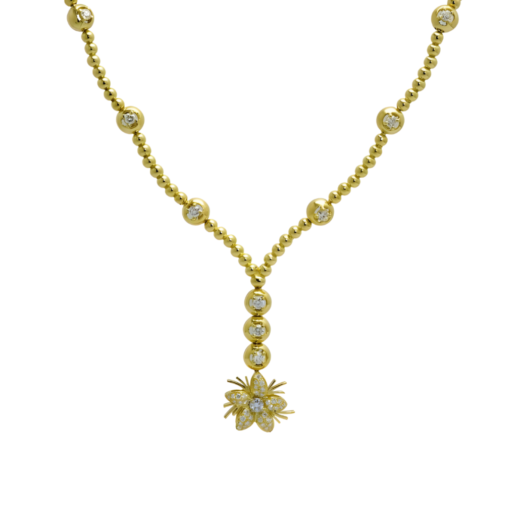 Yellow Gold Bead and Diamond Jasmin Drop Necklace