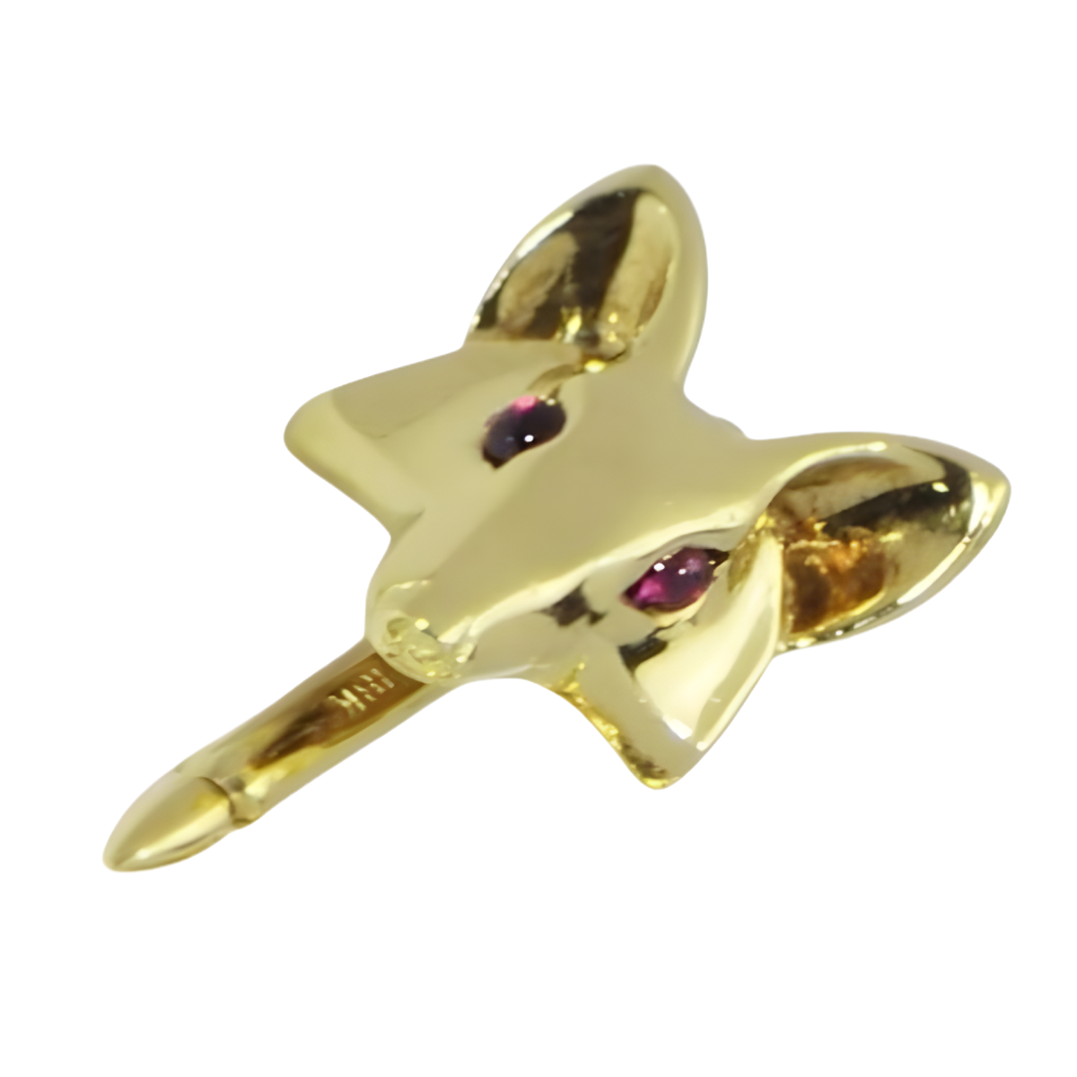 Fox Head Shirt Studs Designed and Handmade by Kaufmann de Suisse in 18kt Yellow Gold featuring 6 Round Rubies weighing 0.34cts