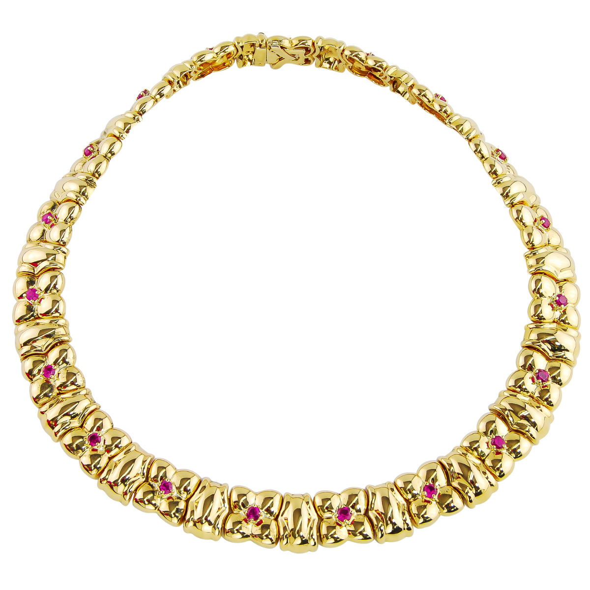 Ruby Necklace Designed & Handmade by Kaufmann de Suisse in 18kt Yellow Gold featuring 19 Round Brilliant cut Rubies weighing a total of 3.51cts